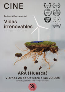 Este último fin de semana, cine documental. El viernes 24 a las 20h en Ara y el domingo a las 18h en Bernués. El documental analiza el impacto de la instalación de energías renovables en el medio rural.